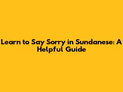 The Basics of Saying Sorry in Sundanese