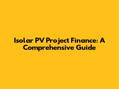 Isolar PV Project Finance: A Comprehensive Guide