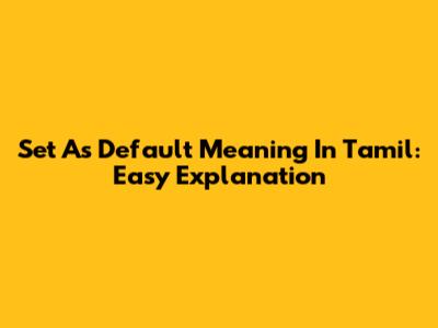 Set As Default Meaning In Tamil: Easy Explanation