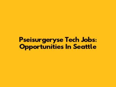 Pseisurgeryse Tech Jobs: Opportunities In Seattle