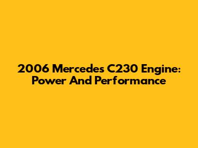 2006 Mercedes C230 Engine: Power And Performance