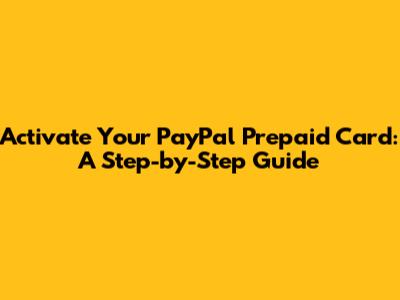 Activate Your PayPal Prepaid Card: A Step-by-Step Guide