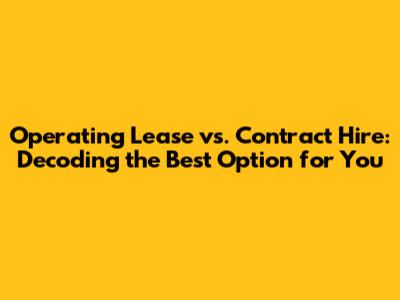 Hey everyone! Choosing the right vehicle financing option can feel like navigating a maze, right? Especially when you're weighing up operating leases against contract hire. Both are popular ways to get behind the wheel without the commitment of buying, but they've got some key differences. In this article, we'll break down the nitty-gritty of each, so you can decide which suits your needs (and your wallet!) best. Let's dive in and make sense of these two popular choices in the world of vehicle financing. Whether you're a business owner looking to expand your fleet, or an individual wanting a hassle-free driving experience, understanding the nuances of these options is crucial. We'll explore the costs, benefits, and potential drawbacks of each, helping you make an informed decision that aligns with your financial goals and driving requirements. So, buckle up, and let's get started!