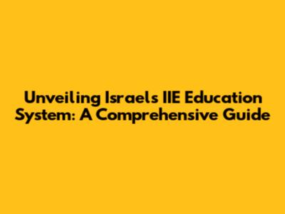 Unveiling Israel's IIE Education System: A Comprehensive Guide