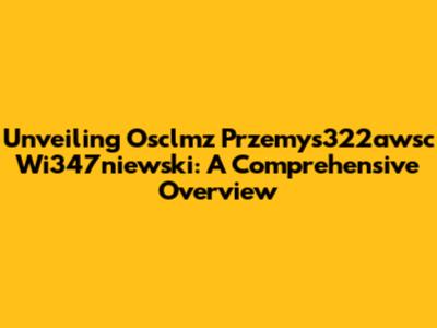 Unveiling Osclmz Przemys322awsc Wi347niewski: A Comprehensive Overview