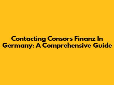 Contacting Consors Finanz In Germany: A Comprehensive Guide