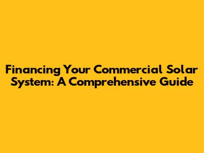 Financing Your Commercial Solar System: A Comprehensive Guide