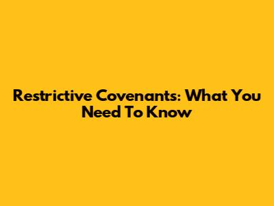 Restrictive Covenants: What You Need To Know