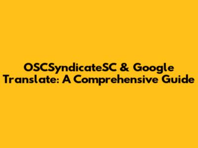 OSCSyndicateSC & Google Translate: A Comprehensive Guide