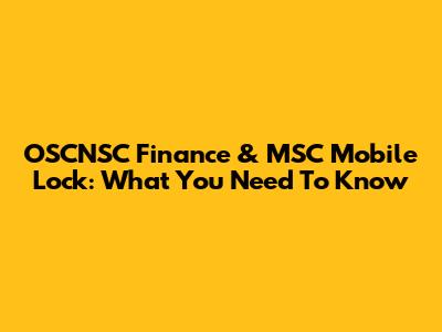 OSCNSC Finance & MSC Mobile Lock: What You Need To Know