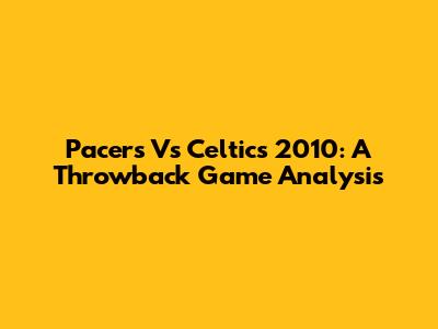 Pacers Vs Celtics 2010: A Throwback Game Analysis