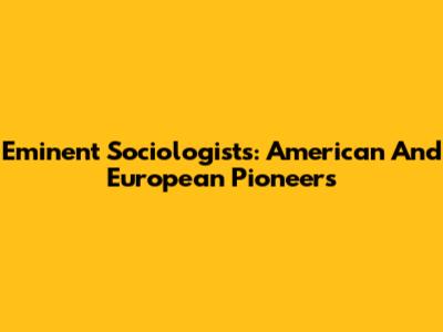 Eminent Sociologists: American And European Pioneers