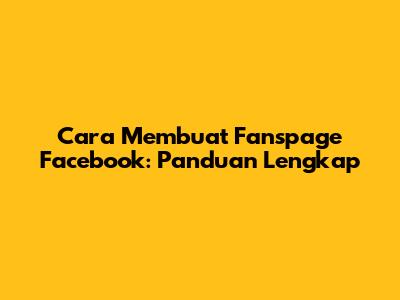Cara Membuat Fanspage Facebook: Panduan Lengkap