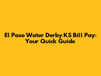 El Paso Water Derby KS Bill Pay: Your Quick Guide