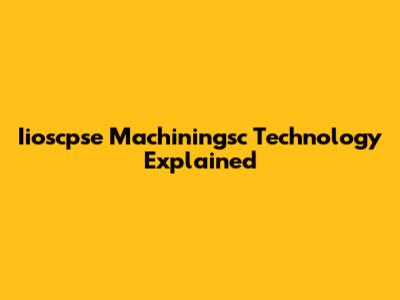 Iioscpse Machiningsc Technology Explained