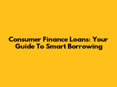 Consumer Finance Loans: Your Guide To Smart Borrowing