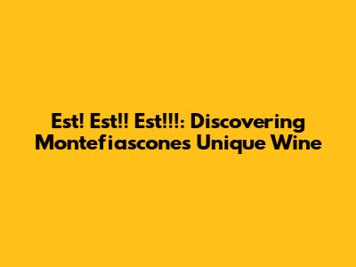 Est! Est!! Est!!!: Discovering Montefiascone's Unique Wine