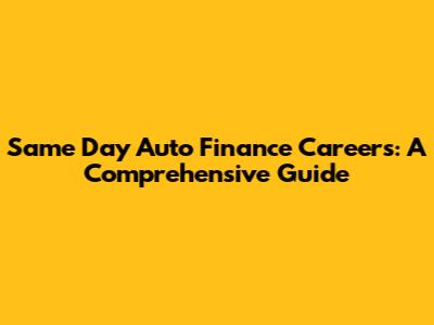 Same Day Auto Finance Careers: A Comprehensive Guide