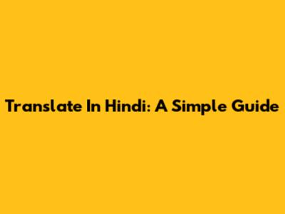 Translate In Hindi: A Simple Guide