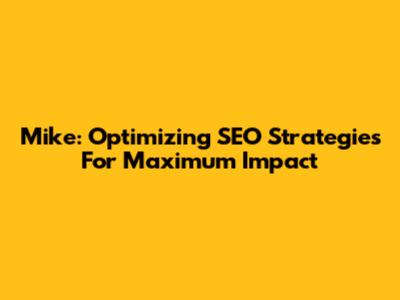 Mike: Optimizing SEO Strategies For Maximum Impact