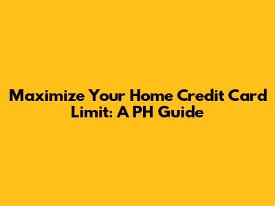 Maximize Your Home Credit Card Limit: A PH Guide