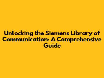 What Exactly Is the Siemens Library of Communication?