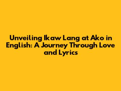 Hey everyone! Today, we're diving deep into a beautiful song that tugs at the heartstrings, "Ikaw Lang at Ako." But hold on, what if you don't speak Tagalog? No worries, because we're going to explore this amazing song, its meaning, and how it translates into English. Get ready to embark on a lyrical adventure that transcends language barriers and celebrates the universal language of love. This article serves as your guide to understanding the heart of "Ikaw Lang at Ako" in English, so you can fully appreciate the song’s message, regardless of your background. We'll break down the lyrics, explain the core message, and explore why this song resonates so deeply with so many people. So, buckle up, grab your headphones, and let's get started!