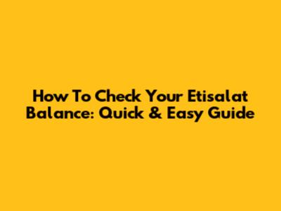 How To Check Your Etisalat Balance: Quick & Easy Guide