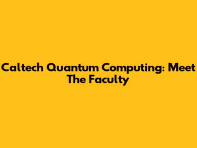 Caltech Quantum Computing: Meet The Faculty