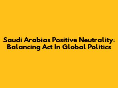 Saudi Arabia's Positive Neutrality: Balancing Act In Global Politics