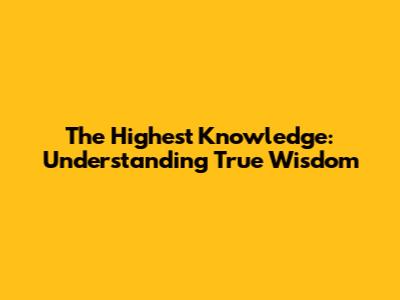 The Highest Knowledge: Understanding True Wisdom