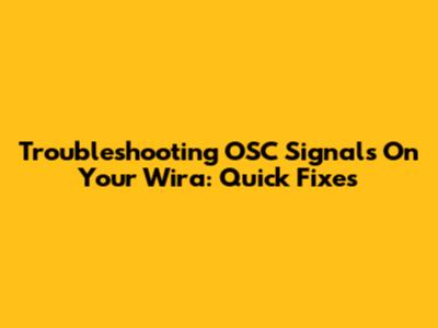 Troubleshooting OSC Signals On Your Wira: Quick Fixes