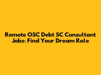 Remote OSC Debt SC Consultant Jobs: Find Your Dream Role